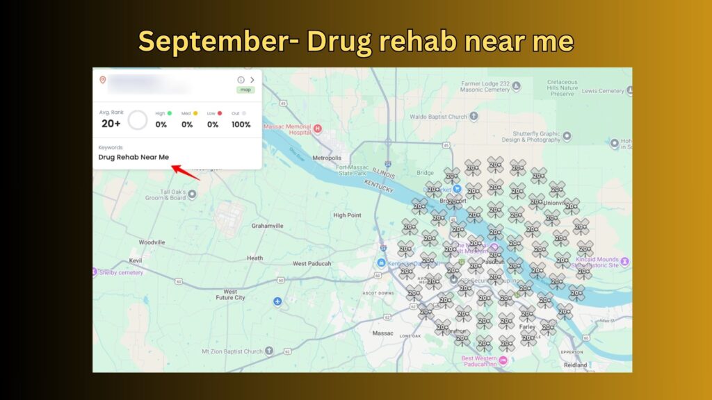 they had zero visibility, zero calls, and no ranking presence on Google for their core keywords such as “drug rehab near me”, “rehab center Paducah”, and related transactional terms.